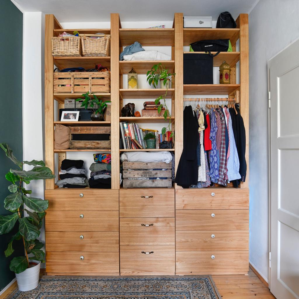 Schrank Erle 003Korpusteile und Schubladen wurden gedübelt.
