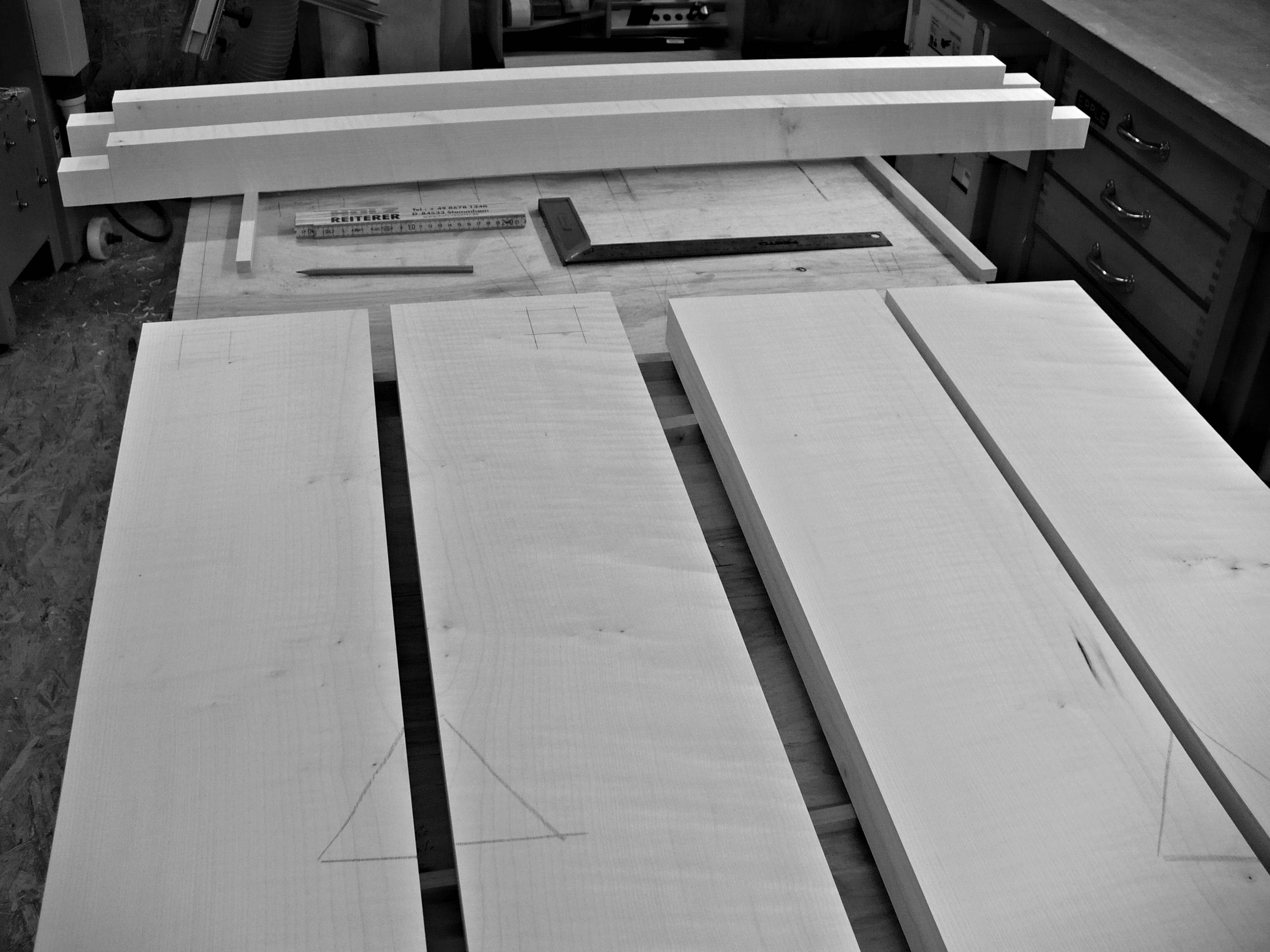 Schreibtisch aus Ahorn mit Socken aus Nussbaum