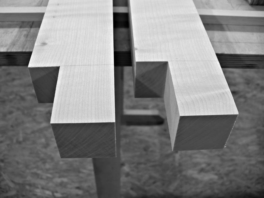 ← Schreibtisch aus Ahorn mit Socken aus Nussbaum