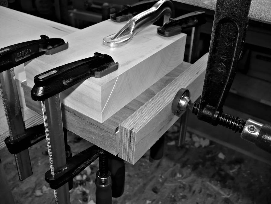 Schreibtisch aus Ahorn mit Socken aus Nussbaum