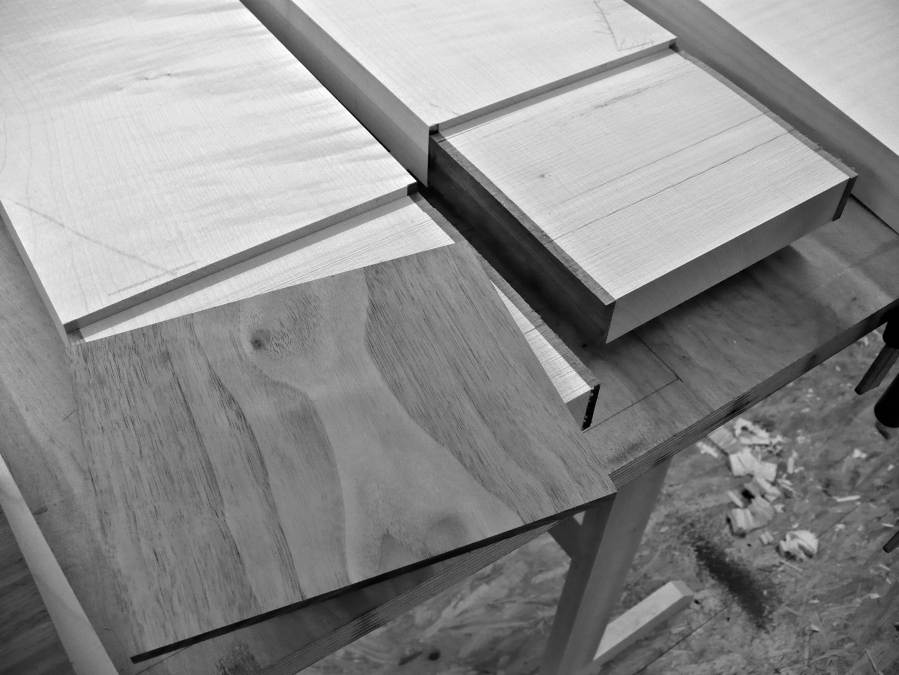 Schreibtisch aus Ahorn mit Socken aus Nussbaum