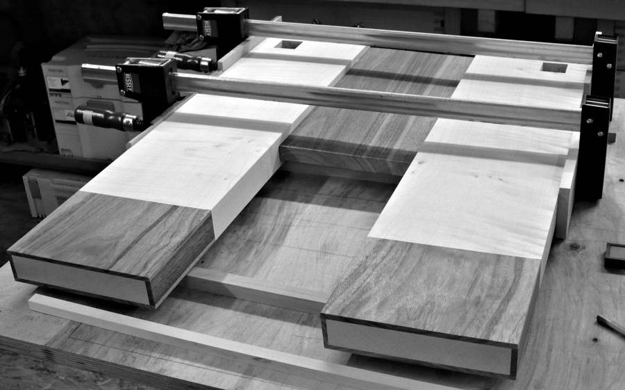 ← Schreibtisch aus Ahorn mit Socken aus Nussbaum