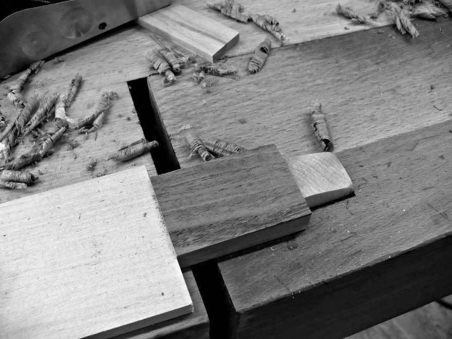 Schreibtisch aus Ahorn mit Socken aus Nussbaum