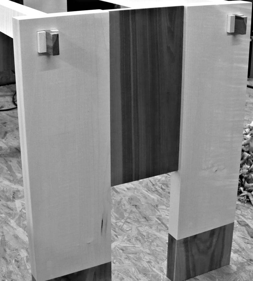 Schreibtisch aus Ahorn mit Socken aus Nussbaum