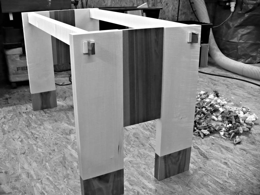 Schreibtisch aus Ahorn mit Socken aus Nussbaum