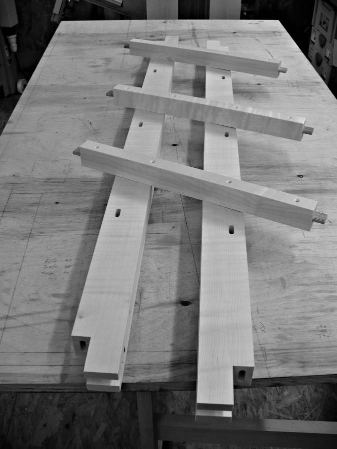Schreibtisch aus Ahorn mit Socken aus Nussbaum
