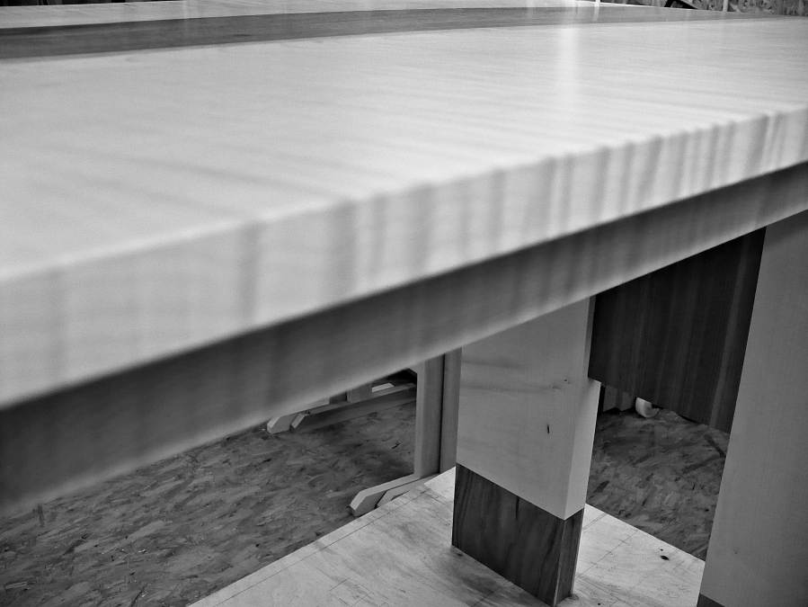← Schreibtisch aus Ahorn mit Socken aus Nussbaum