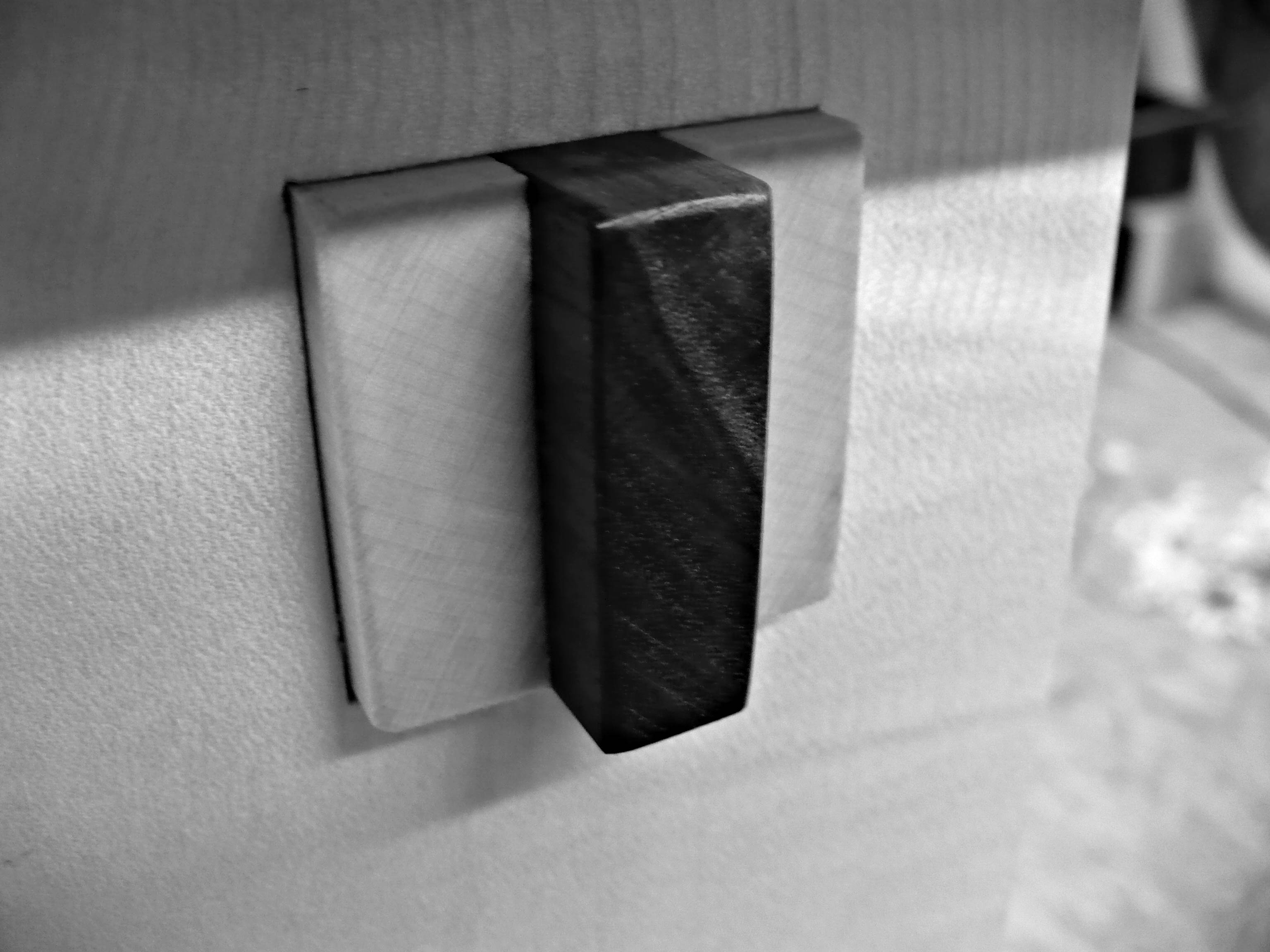 Schreibtisch aus Ahorn mit Socken aus Nussbaum