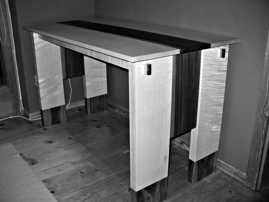 Schreibtisch aus Ahorn mit Socken aus Nussbaum
